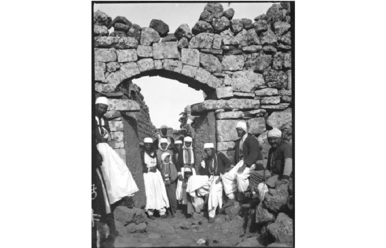صورة تاريخ مايو 1900م -بوابة في جدار المدينة الغربي- رجال وأطفال دروز