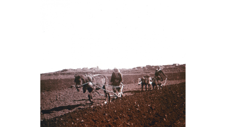 صورة لحراثة الأرض في جبل العرب عام 1926.وإليكم الصورة بعد المعالجة عبر الذكاء الاصطناعي.المصدرالمتميز