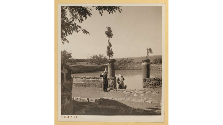 صورة لنساء من بني معروف يأخذن المياه من البركة الوسطى في شهبا في جبل العرب عام 1938.وإليكم الصورة بعد التلوين بواسطة الذكاء الاصطناعي.المصدر1المصدر2المتميز