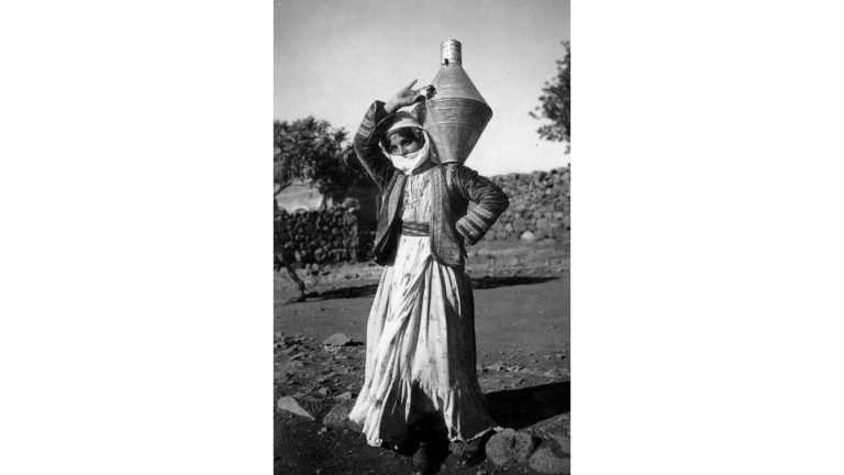 صورة لفتاة من بني معروف في جبل العرب عام 1937.