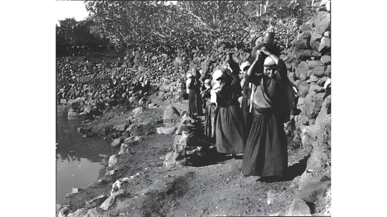 صورة لنساء دروز من حبران تحملن جرار الماء عام 1900.