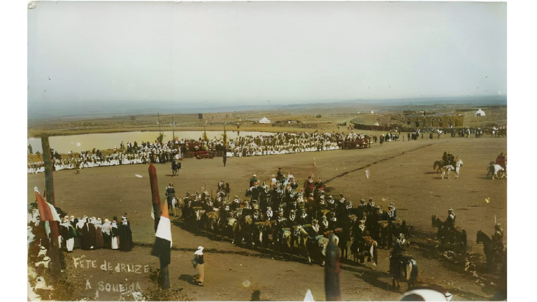تشاهدون صورة من السويداء في تاريخ 5 آذار 1922، وقد تم تلوينها بواسطة الذكاء الاصطناعي.