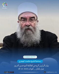 والحرص على حقوق الإنسان ، وإيصال الشعوب إلى حقوقها ، وعلى الأخص مواقفها مما مررنا به من حرب إبادة طائفية في باشان الحبيب.. فتحية لدولة اسرائيل حكومة وشعبا ، ولكل الدول العظمى التي تقدّر ما نقوم به وتسعى للحل .